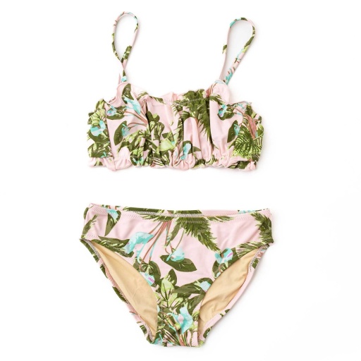 A sweet tropical vibe for sunny days, this Blush Tropics smocked two-piece swimsuit keeps her comfortable, covered, and ready for every splash.