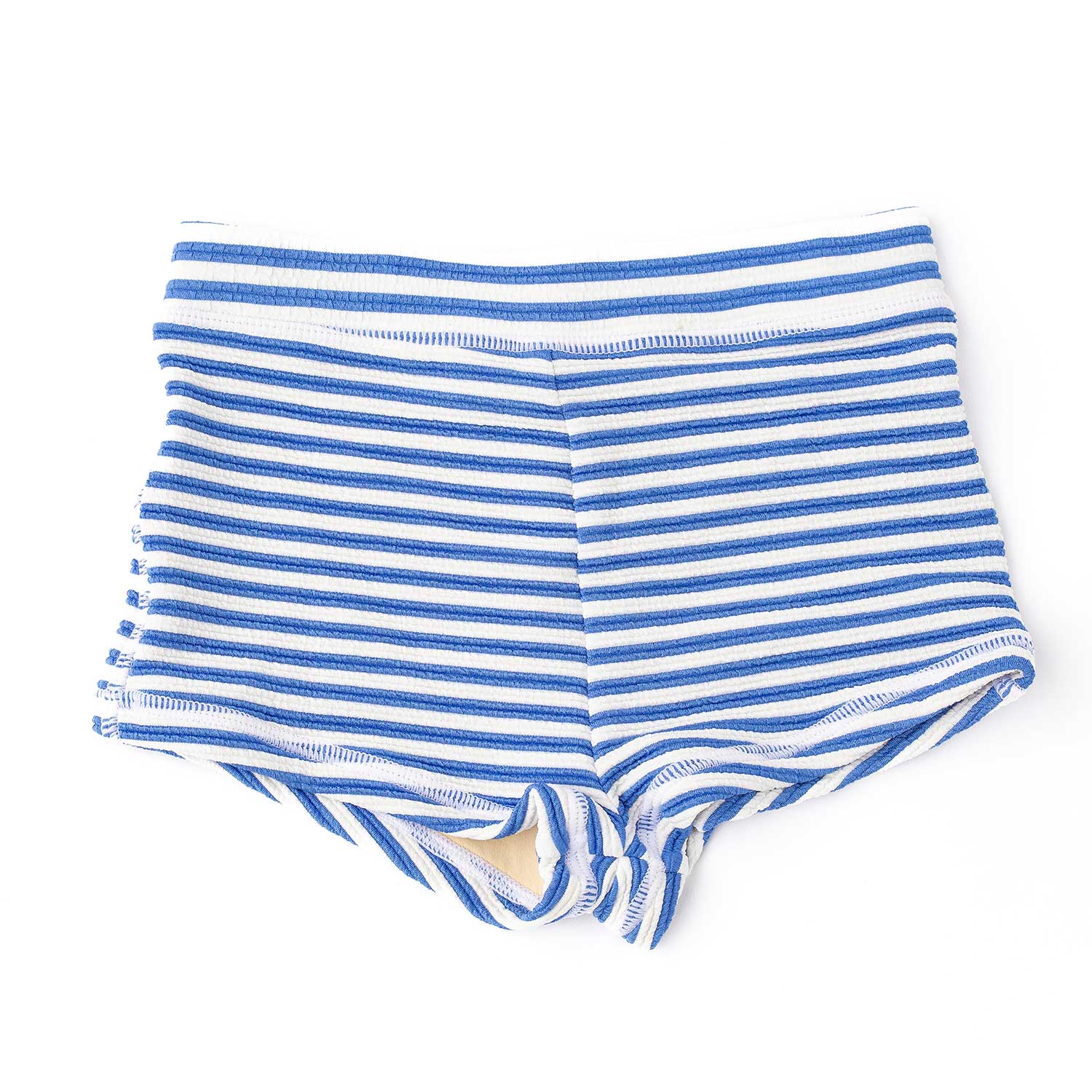 The Cobalt Stripe Girls Ribbed Swim Shorts are designed for girls who love to move, swim, and play with confidence. Made in a soft ribbed fabric with classic blue-and-white stripes, these swim shorts provide comfortable extra coverage while staying stretchy and lightweight for all-day wear. The pull-on waistband makes getting ready simple, and the fit stays secure through swimming, splashing, and running around the pool deck. They coordinate effortlessly with Shade Critters ribbed swim tops and rashguards, making them a versatile addition to her warm-weather wardrobe. Whether shes diving into the pool or building sandcastles at the beach, these shorts deliver the comfort, durability, and coverage parents appreciate.